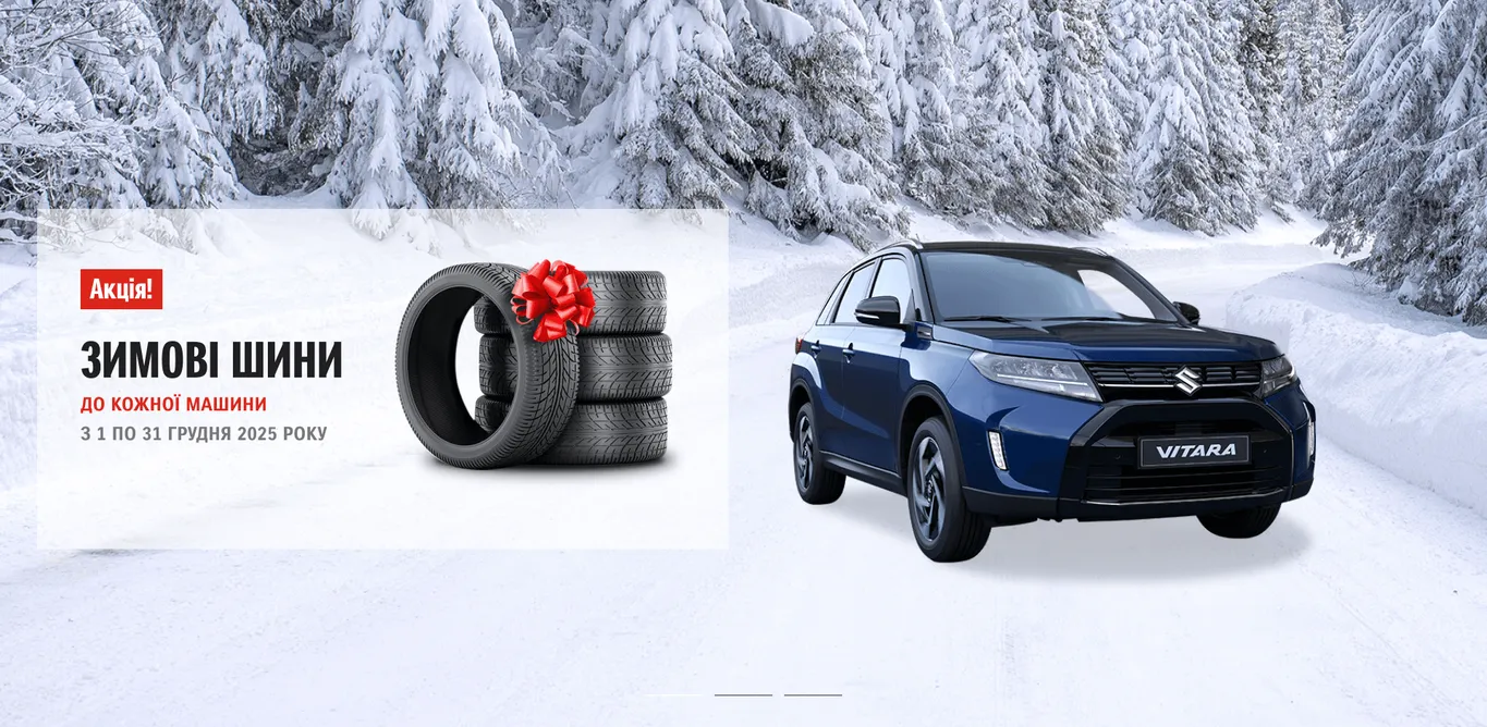 Офіційний дилерський центр «SUZUKI на Подолі» оголошує старт спеціальної зимової пропозиції: у період з 1 по 30 грудня 2025 року кожен покупець нового автомобіля* Suzuki отримує** комплект зимових шин.