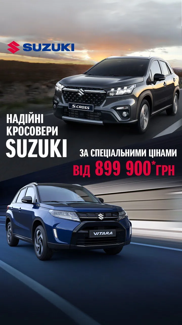Офіційний дилерський центр «SUZUKI на Подолі», оголошує про спеціальні ціни на кросовери SUZUKI VITARA та S-CROSS – від 899 900 грн* до 30 листопада 2025 року.